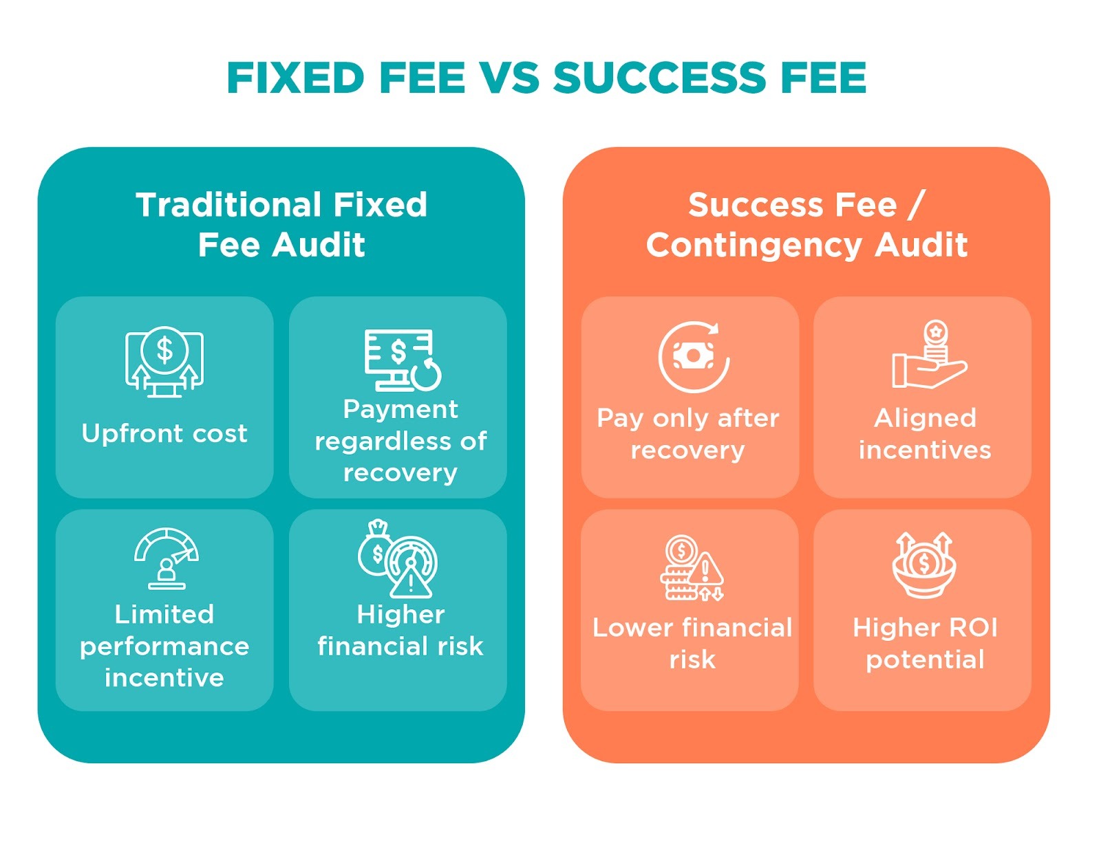 A fixed-fee audit model requires companies to commit budget upfront—even if the audit fails to recover meaningful value.